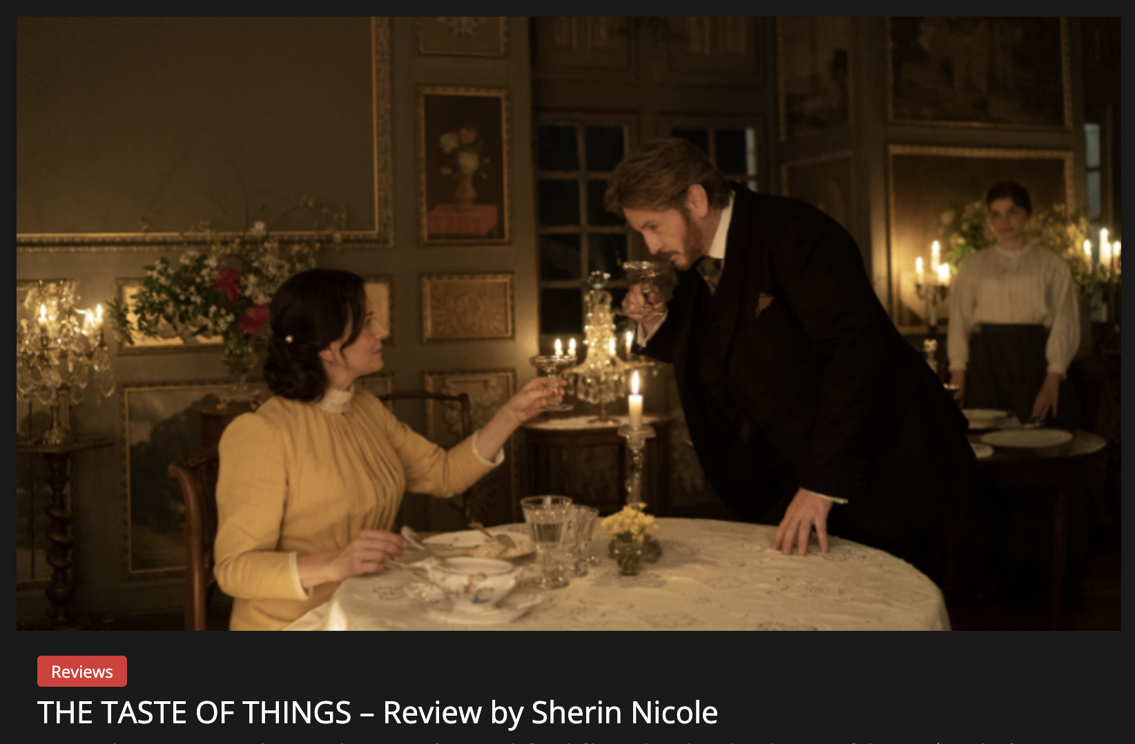 The framing and palettes are lavish—chocolatey, golden, and green. The lighting is as soothing as sunbeams and hearths. And, more than Magimel’s Doudin, the camera becomes Binoche’s lover. Her Eugénie is the centerpiece. We begin to want what she longs for. Our hearts flutter when she gently alludes to her desires. The Taste of Things is a delicious filmic-feast; lingering on the palate with bittersweetness.